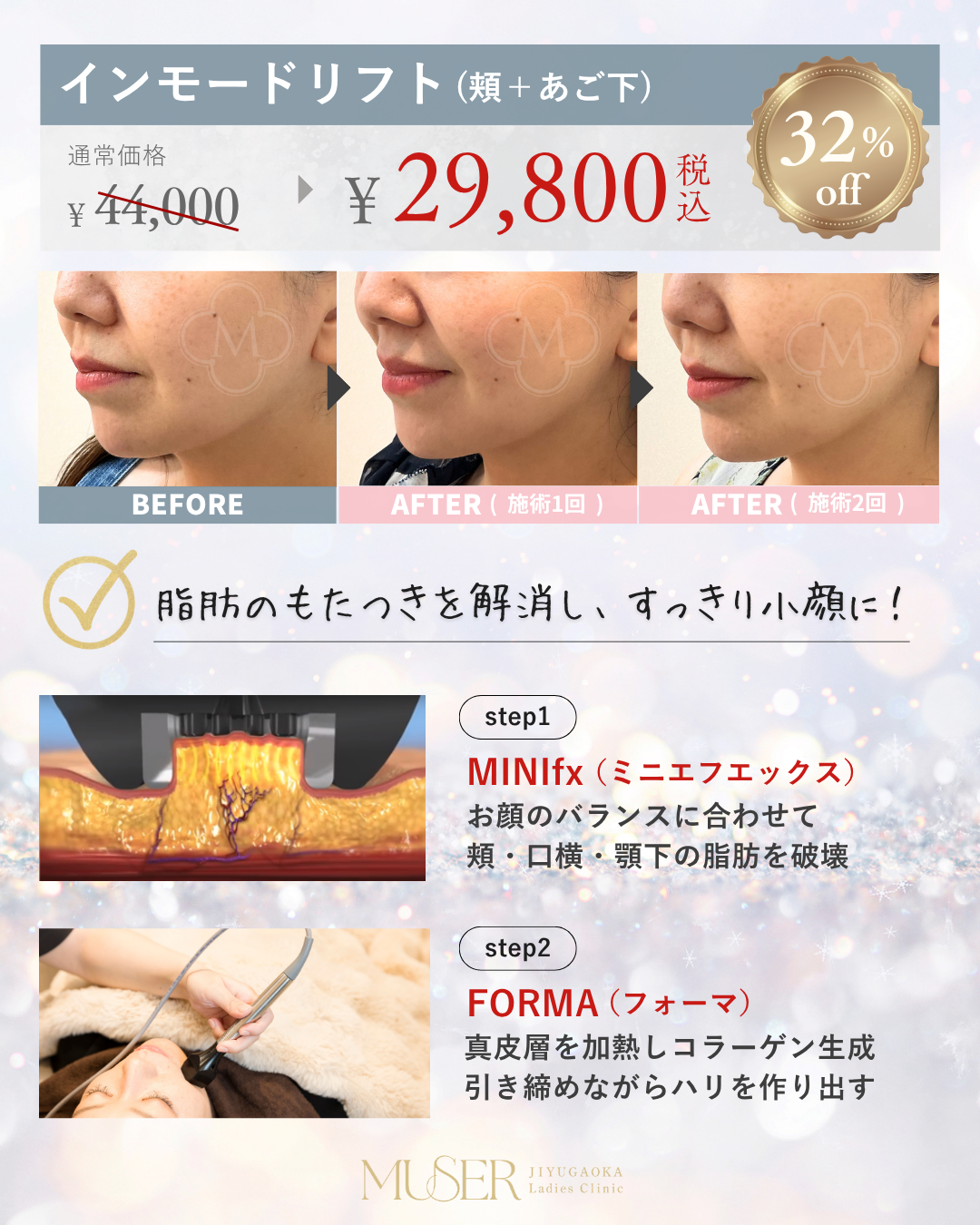 高周波リフトアップ治療 インモードリフト(MINIfx+FORMA) 小顔治療の大人気施術